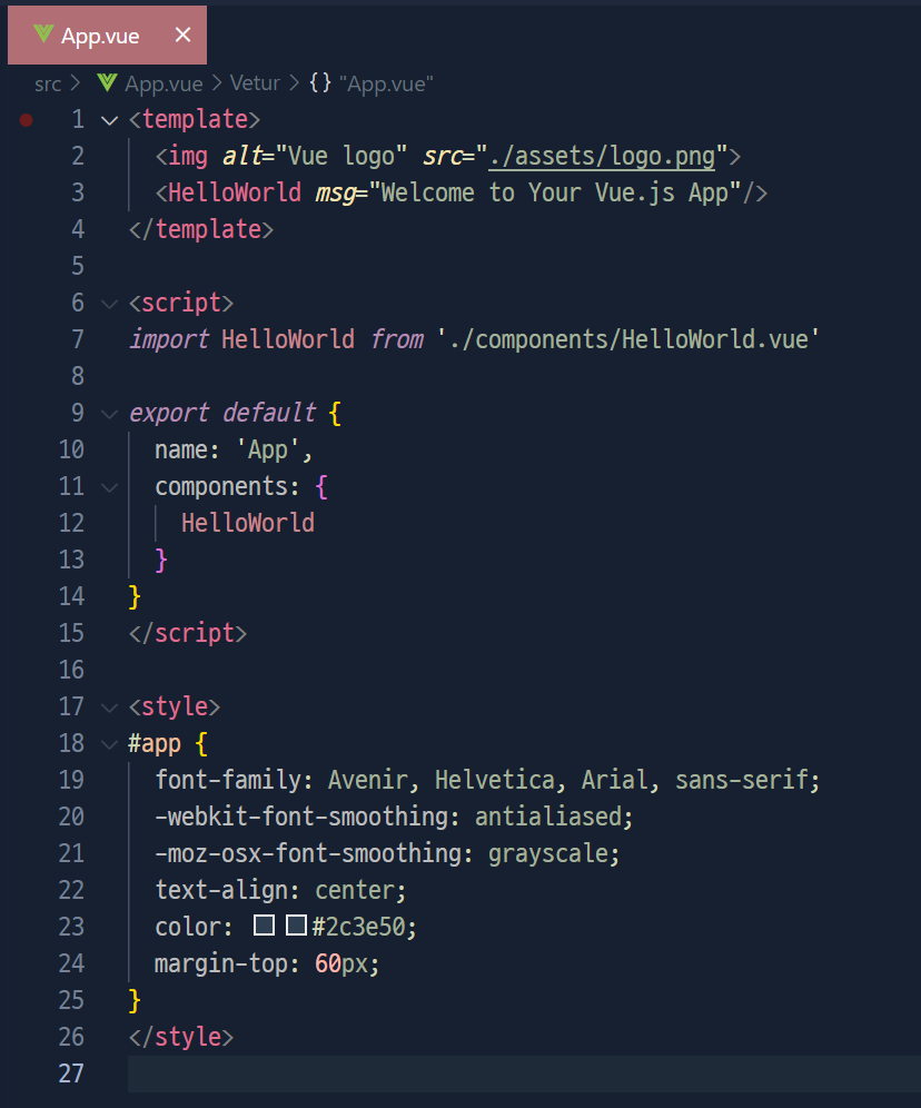 이런식으로 파일들이 생성되며, App.vue가 메인 페이지가 된다.