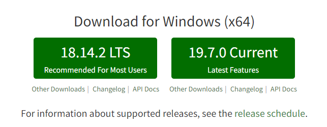 이렇게 두 버전 중 최신 버전보다는 LTS 버전을 설치하는 것이 더 좋다.