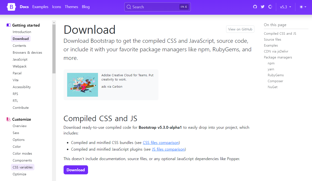 1) 우선 구글에 bootstrap을 검색하면 가장 상단에 나오는 페이지에 들어간다. ( 하단 링크 참고 )