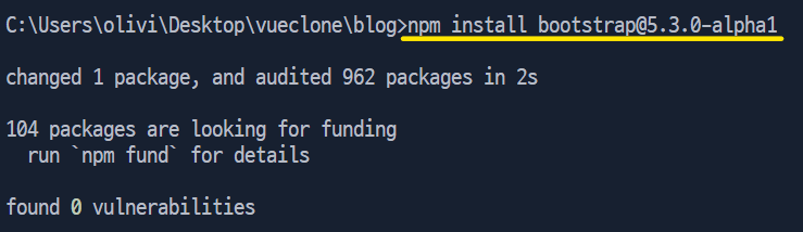 ★ 터미널에서 npm run serve 명령어로 인해 서버가 돌아가고 있다면 프로세스 종료하고 새 터미널에서 설치하기
