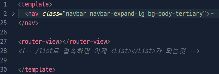 이렇게 두 줄의 코드를 앞서 작성한 <router-view> 태그 하단에 추가해 주었다.