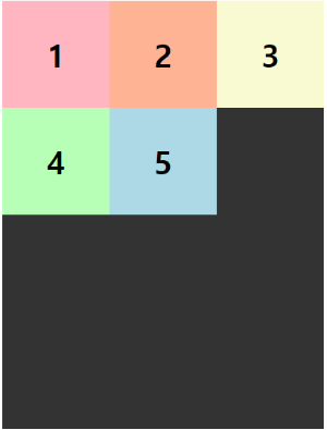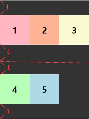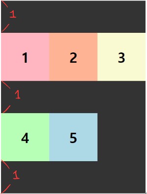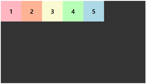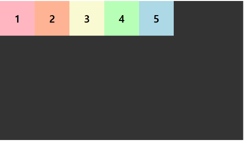- flex-start (default): 아이템을 주축에 대해서 start지점을 기준으로 나열
