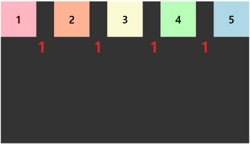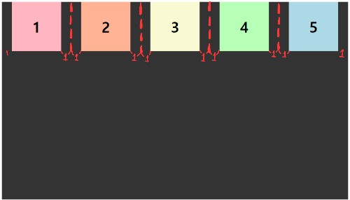 - space-between: 처음과 마지막 아이템을 양 끝에 붙이고, 나머지 영역 공평하게 나눔