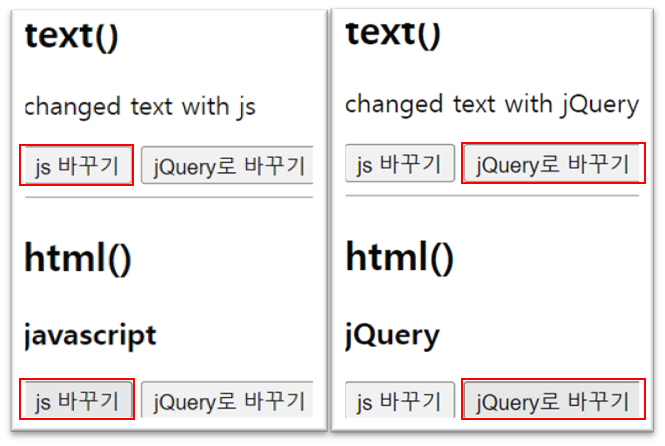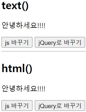 <button type="button" onclick="changeHtmlJquery();">jQuery로 바꾸기</button>