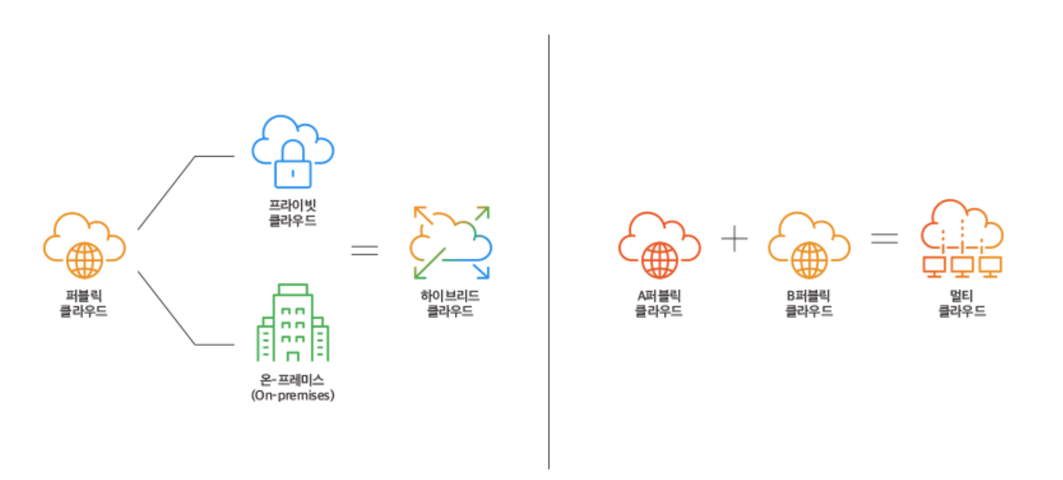- 퍼블릭 클라우드와 프라이빗 클라우드를 결합, 애플리케이션이 가장 적절한 위치에서 실행되도록 한 혼합형 클라우드
