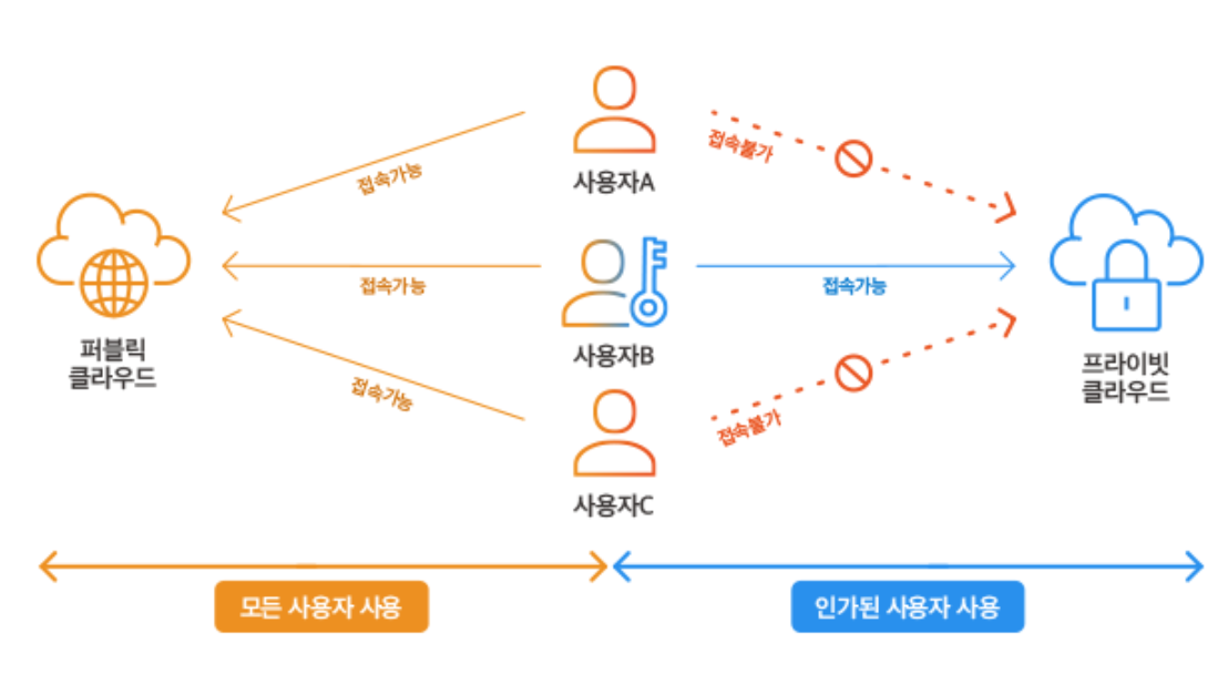 퍼블릭 클라우드는 누구나 접속이 가능하나,