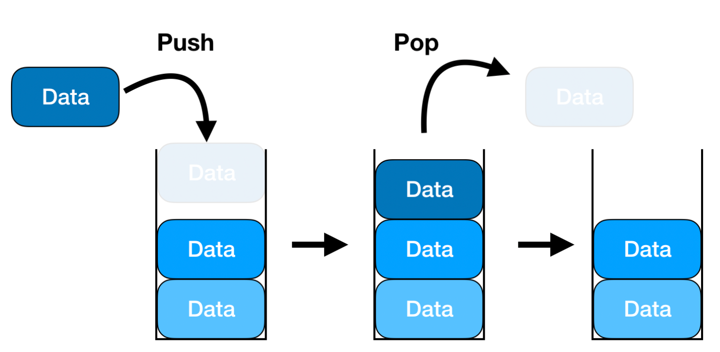 - pop (삭제) : 가장 최근에 삽입된 자료(데이터) 삭제