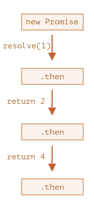 - 2에서 반환한 값은 다음, then 핸들러로 전달 // (***) 부분