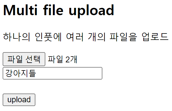<!-- 하나의 인풋에 여러 파일을 입력받고 싶다면 multiple 속성을 추가 -->