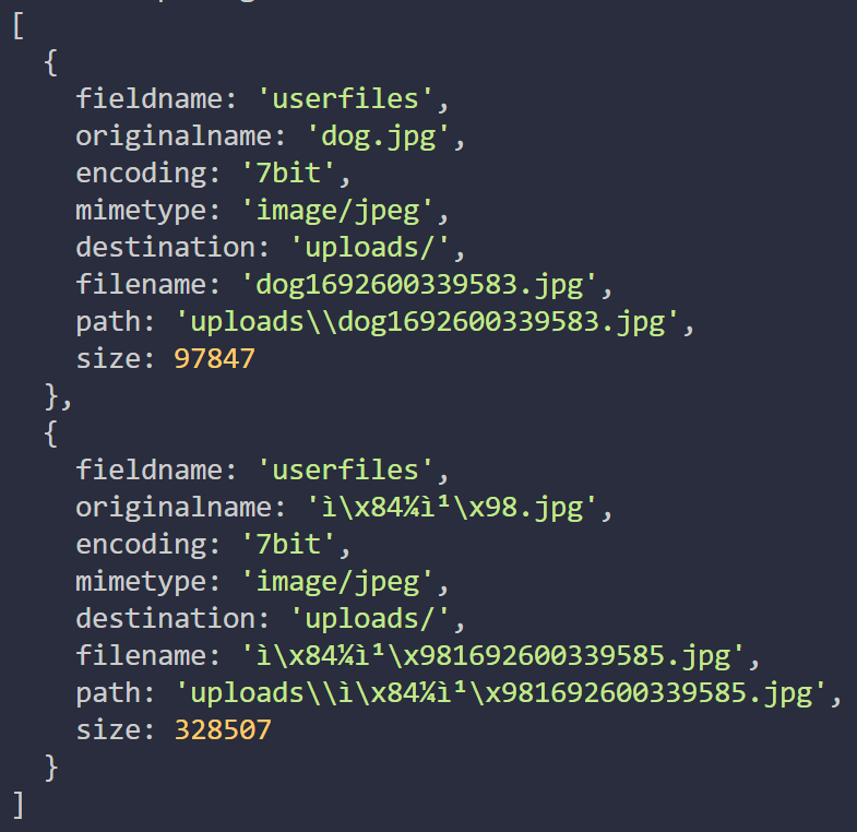 이렇게 req.files이 반환되는 형태가 조금 다른 것을 확인할 수 있다.
