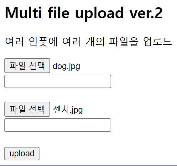 <p>여러 인풋에 여러 개의 파일을 업로드</p>