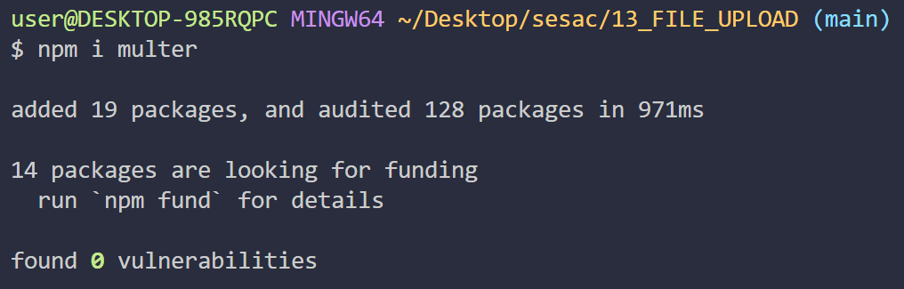 Vscode의 터미널에서 npm i multer 명령어를 통해 설치할 수 있다. (일반적인 모듈 설치 방법과 동일)