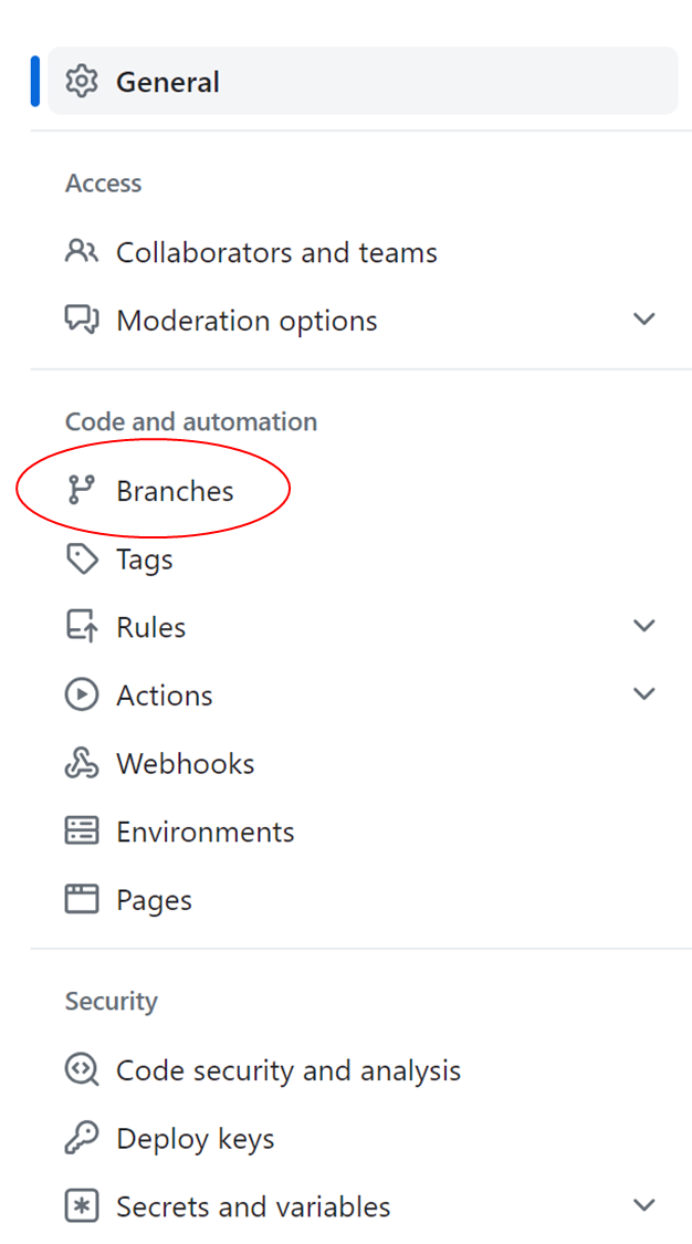 왼쪽 메뉴 중 Branches 탭으로 이동한 뒤,