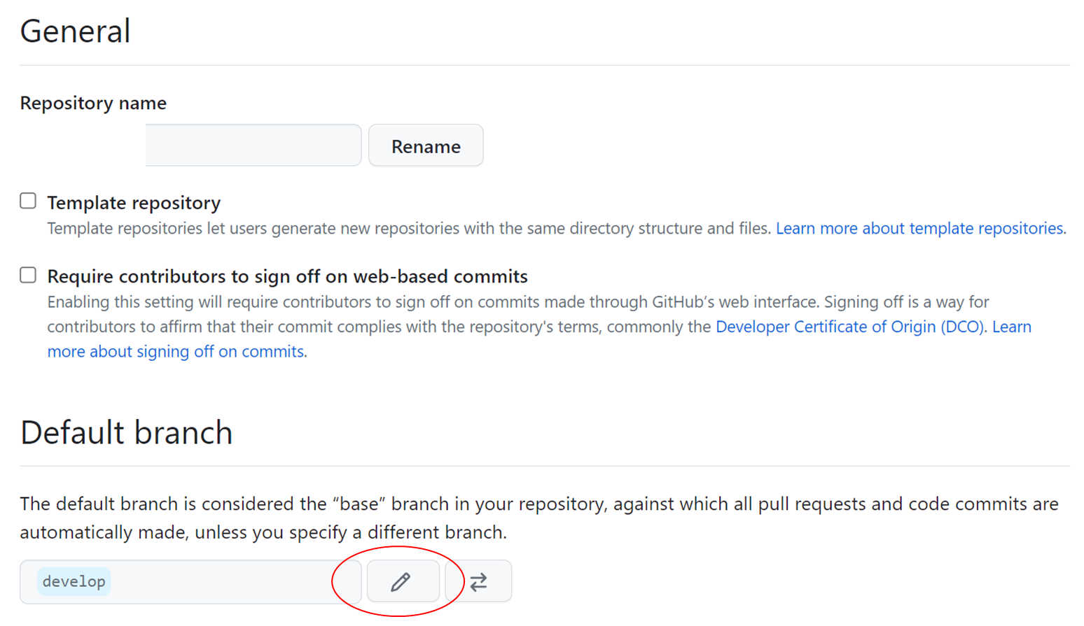 default 브랜치를 develop으로 설정하면 된다.