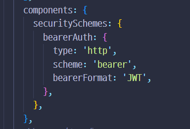 components 안에 securitySchemes를 넣고 저런 식으로 코드를 짜니 생겼다...!!!!