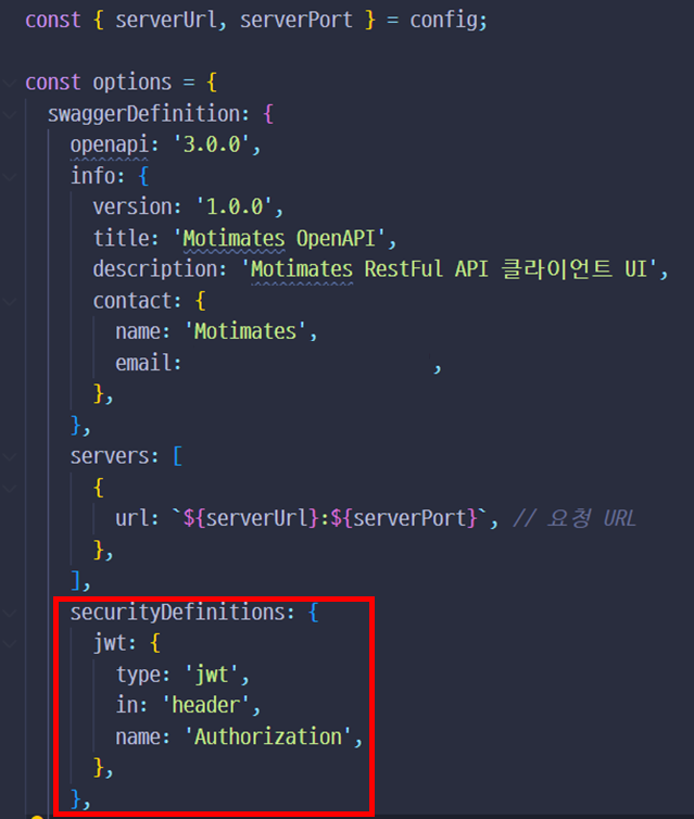 securityDefinitions로 넣는 것이 아니라