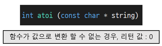 atoi 함수는 문자형 string을 정수 값으로 변환하는 역할을 한다.