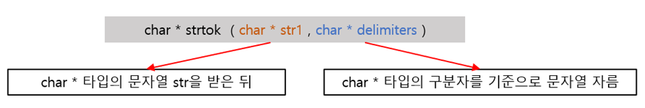 strtok 함수는 string을 tokenize한다는 의미로 문자열을 토큰처럼 자르는 함수이다.