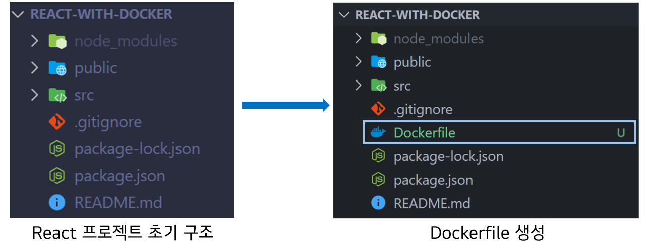 | RUN npm install | RUN 명령어로 컨테이너 내에서 npm install 명령어로 의존성 설치 |