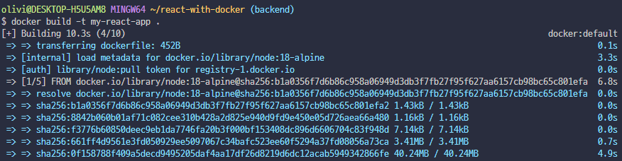 명령어 실행 시 Dockerfile에 작성한 명령어를 기반으로 이미지를 생성한다.