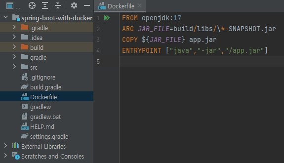 프로젝트의 루트 디렉토리에 Dockerfile을 생성한다.