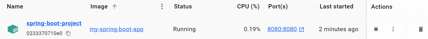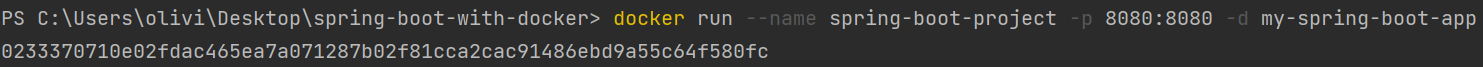 docker run --name spring-boot-project -p 8080:8080 -d my-spring-boot-app 명령어로 컨테이너를 실행하면