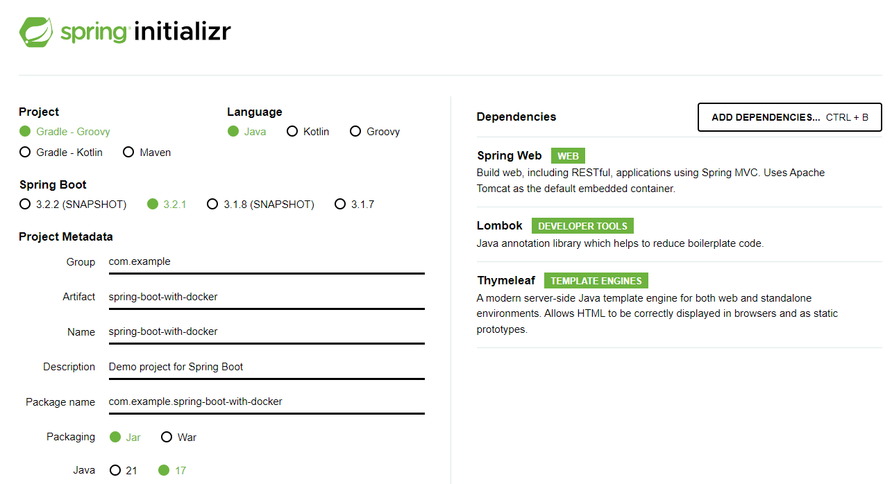아래 사이트에서 Spring Boot 프로젝트에 대한 기본적인 세팅들을 쉽게 설정할 수 있다.