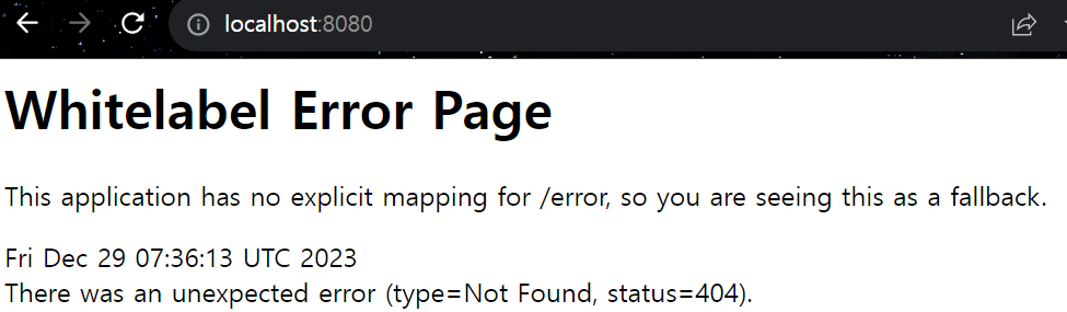 메인 파일을 실행시켜 localhost:8080에 접속이 되는지 확인해 본다.