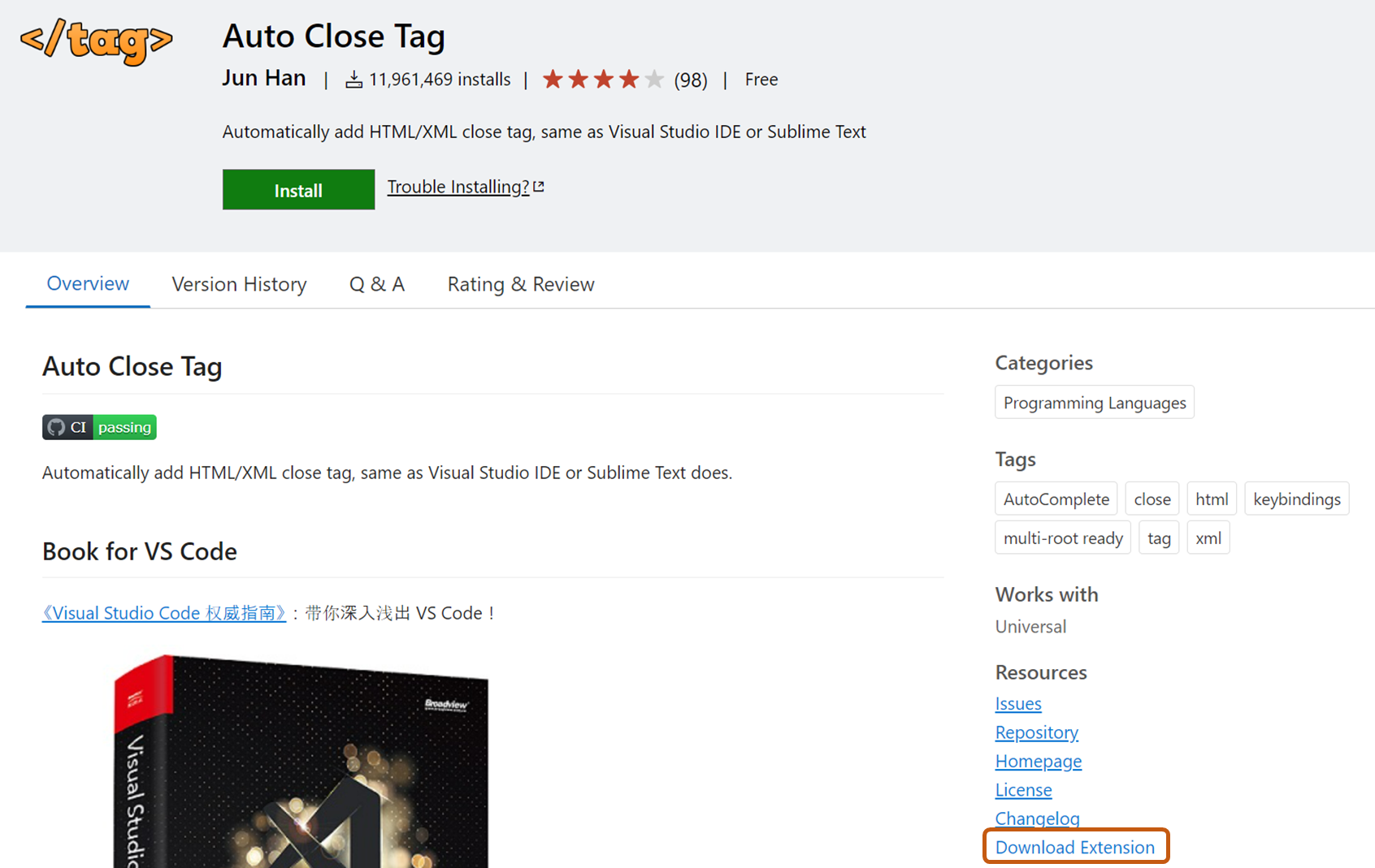 확장 프로그램을 클릭해 들어가면 우측 탭에 Download Extension 항목이 보인다.
