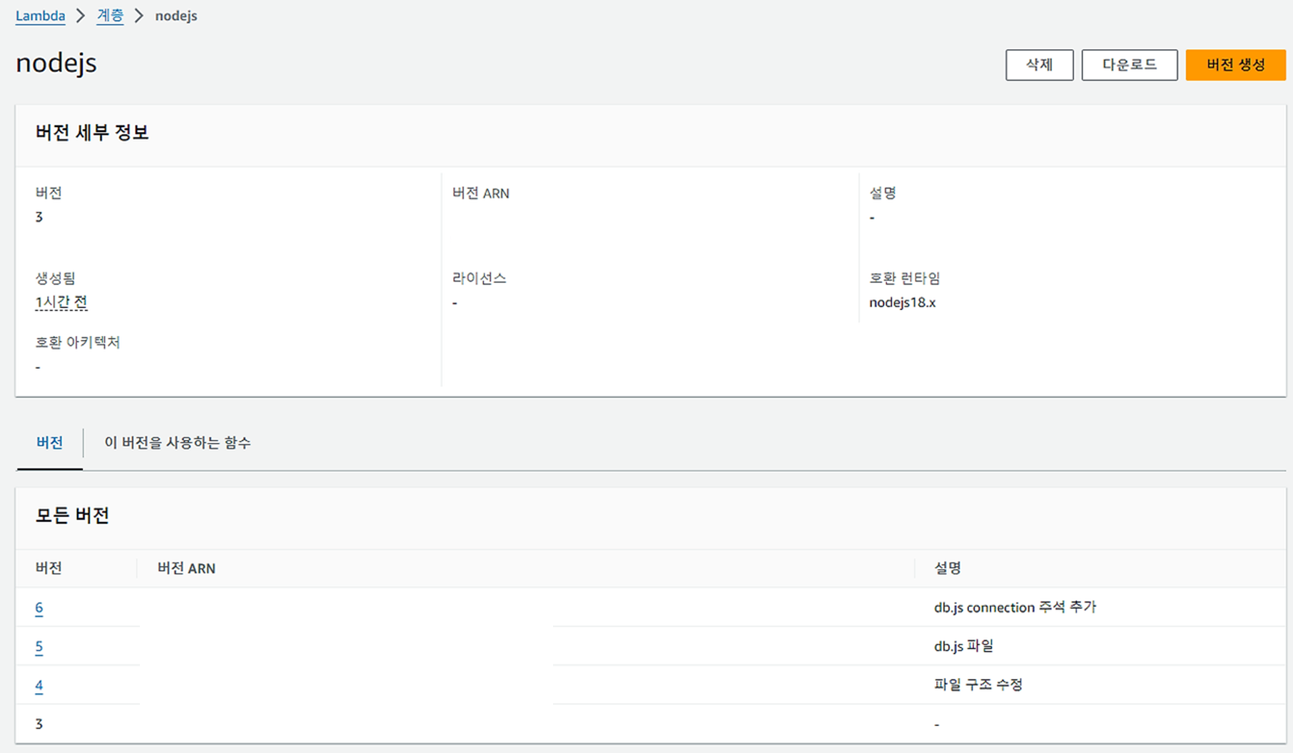 아까 layer에서 버전 관리도 가능하다고 했는데,