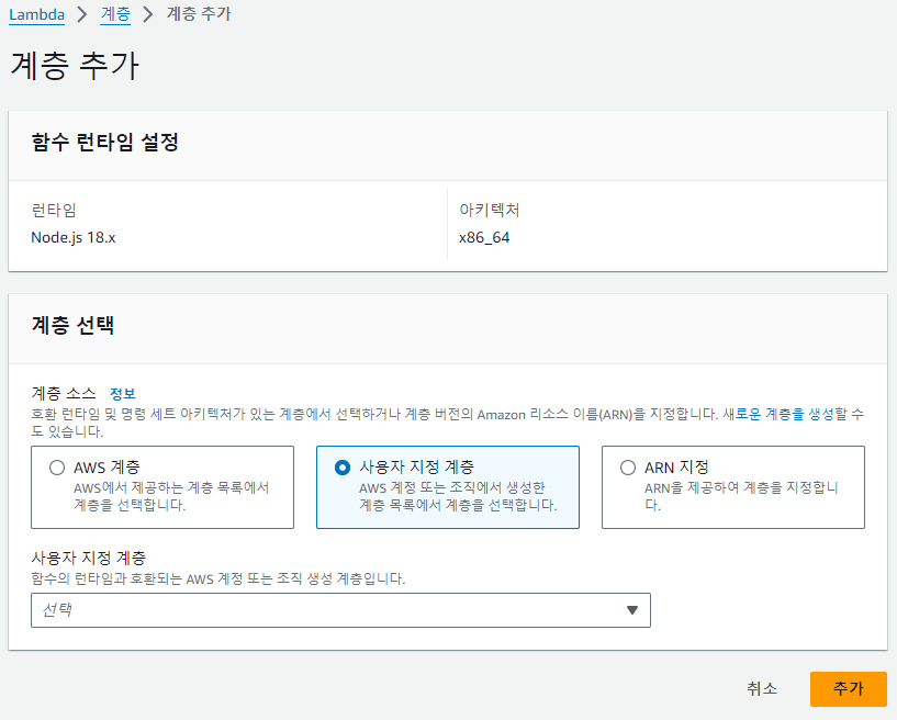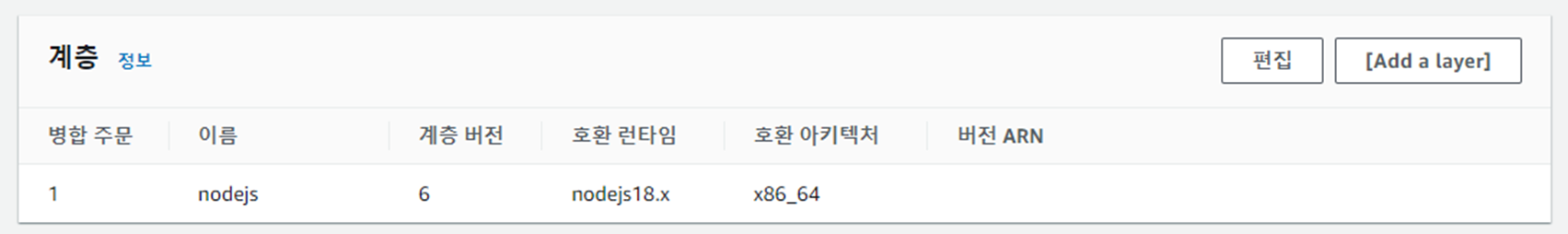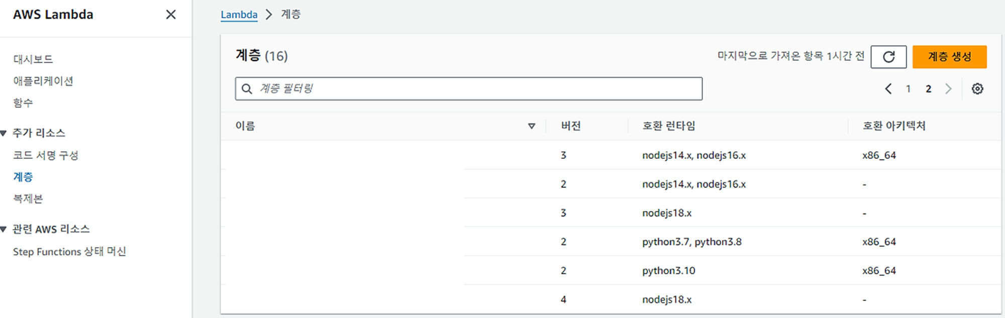 1. lambda > 계층 탭에서 계층 생성 버튼 클릭