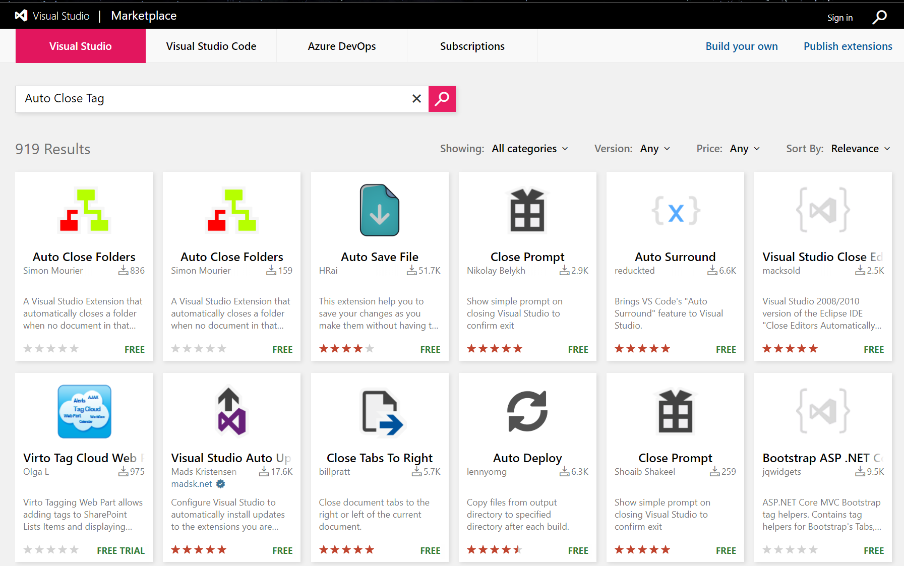 Extensions for Visual Studio family of products on Visual Studio Marketplace